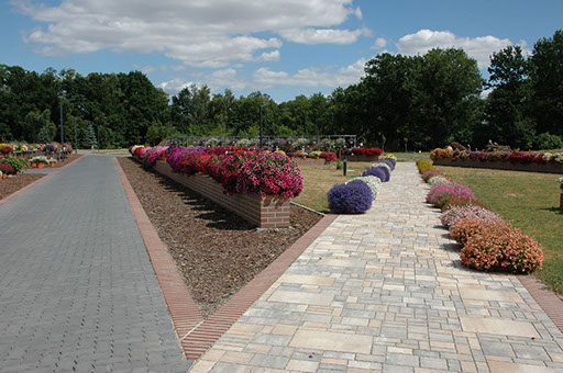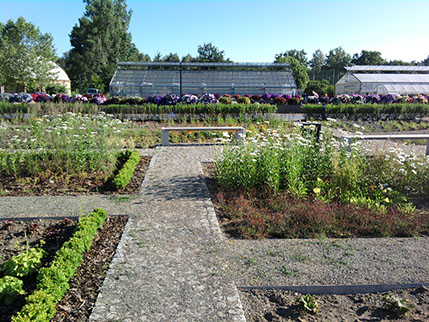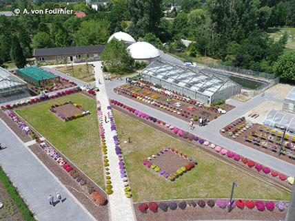 Die ausdauernde Bepflanzung wurde so geplant, dass sie den Auszubildenden als Anschauungsmaterial und den Besuchern als Anregung und Blickfang dient. Zahlreiche Aufstellflächen für die zu bewertenden Wechselflorbepflanzungen runden das Bild ab.